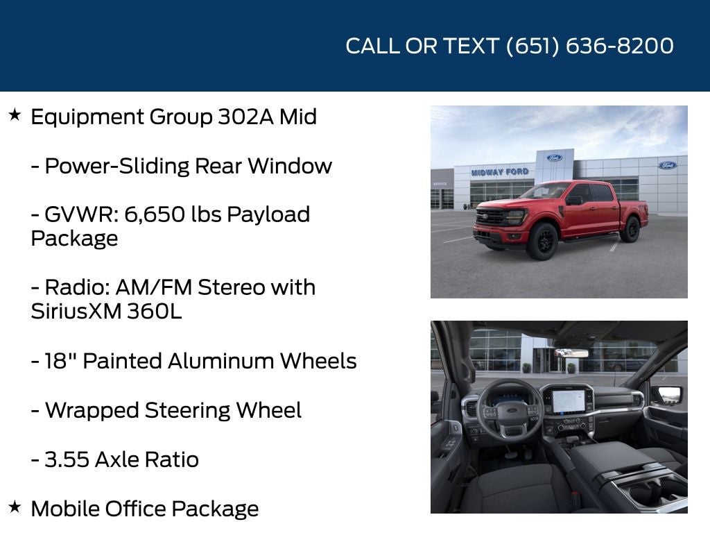 360 Degree Camera, Adaptive Cruise Control with Stop and Go, Equipment Group 302A Mid, Ford Connectivity Package (1-Year Included), Heated Front Seats, Internet access capable: 5G Modem - Ford Connectivity Package, Mobile Office Package, Remote Start System with Remote Tailgate Release, Security system, Wireless Charging, XLT Black Appearance Package.